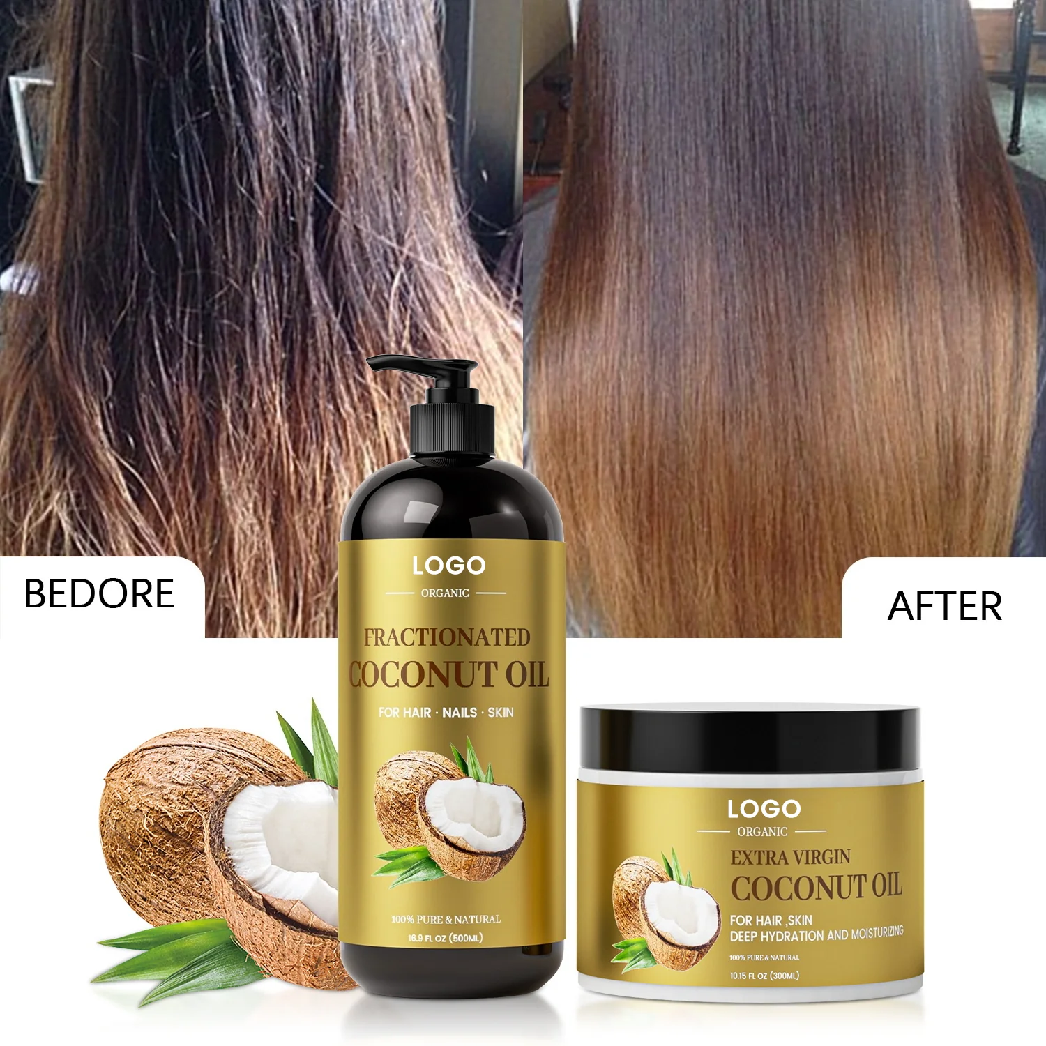 Unlock the ultimate hair rescue with our coconut oil hair care set— coconut oil shampoo + coconut oil hair mask. This sulfate-free shampoo with coconut oil delivers a gentle, non-irritating cleanse, locking in essential moisture. Our coconut hair oil mask provides deep hydration to tame stubborn frizz, leaving your hair feeling revitalized after every treatment.